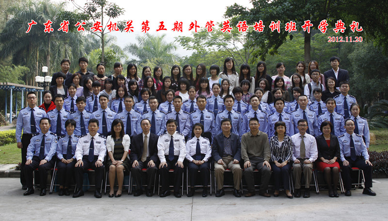 11月19日下午,广东省公安机关第五期外管英语培训班开学典礼在北校区第六教学楼黄华讲堂举行。