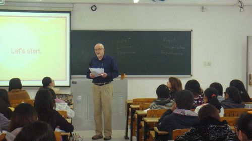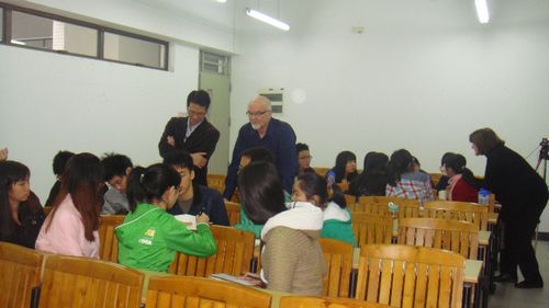 11月26日上午,以“中美社会保障制度”为主题的研讨会在公司北校区六教B302举行。该研讨会由“高端国际商务人才培养视角下的商务英语教学改革团队”组织,邀请到了来自美国犹他州立大学已退休资深教授Michael Bloois和Matha Adams担任当天的主题发言人,必一运动官网2011级创新班及国际商务的《商务综合英语》教师和学子出席了研讨会。研讨会由沈璐老师主持。