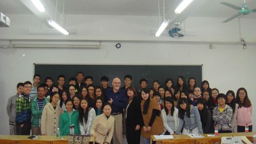 全体师生与美国两教授合影