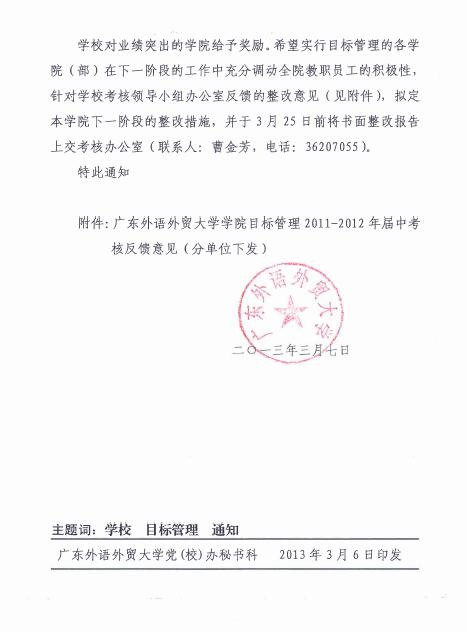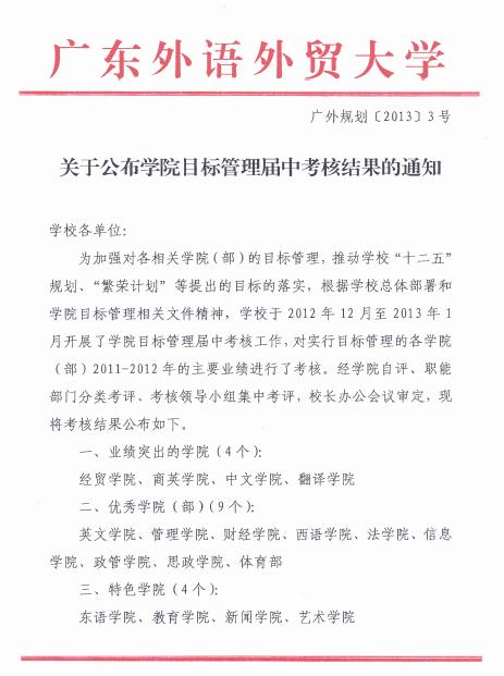 附件:关于公布公司目标管理届中考核结果的通知(广外[2013] 3号)