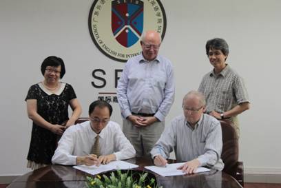 双方并就之前沟通的关于必一运动官网商务英语硕士专业与北园大学商公司商务管理硕士专业的双硕士协议的细节进行了讨论。之后,郭桂杭经理代表公司,Wesley E. Lindahl经理代表北园大学商公司签订了更新之后的双硕士协议。