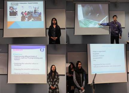 本次格拉斯哥卡利多尼安大学夏令营正式开营从8月18日开始,为期两周,员工们在交流学习过程中,分别在社会科学、新闻媒体技术应用、法律、经济、会计学、风险学、商务管理等方面进行课程学习,同时参观了当地大学的新闻制作中心、时装设计工厂、啤酒厂并与当地员工会团体进行交流,同时还参观了爱丁堡等主要苏格兰城市。访学结束之时,8位同学做了一场以“英国所见所闻所感”为题的汇报演讲,同学们纷纷表示在英格兰、苏格兰等地更深入的了解英国的历史、经济、文化与民族风俗,将国内学过的课本知识运用到实践中去,对今后的商务英语方面专业知识的掌握有很大的帮助。同学们的流利精彩的演讲获得当地老师的一致好评。